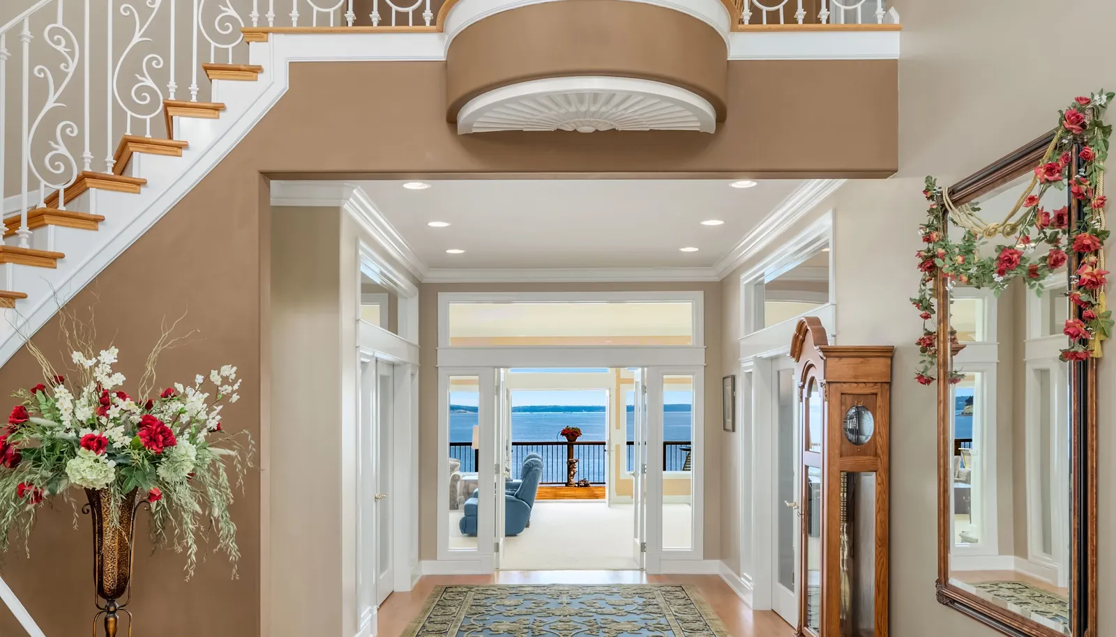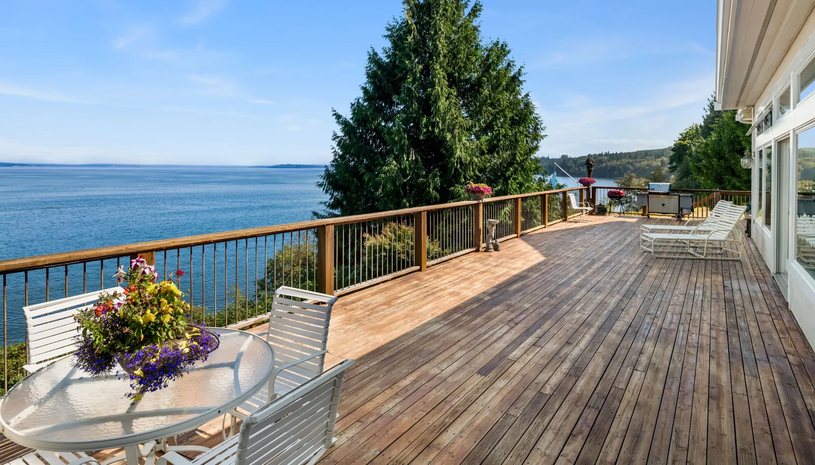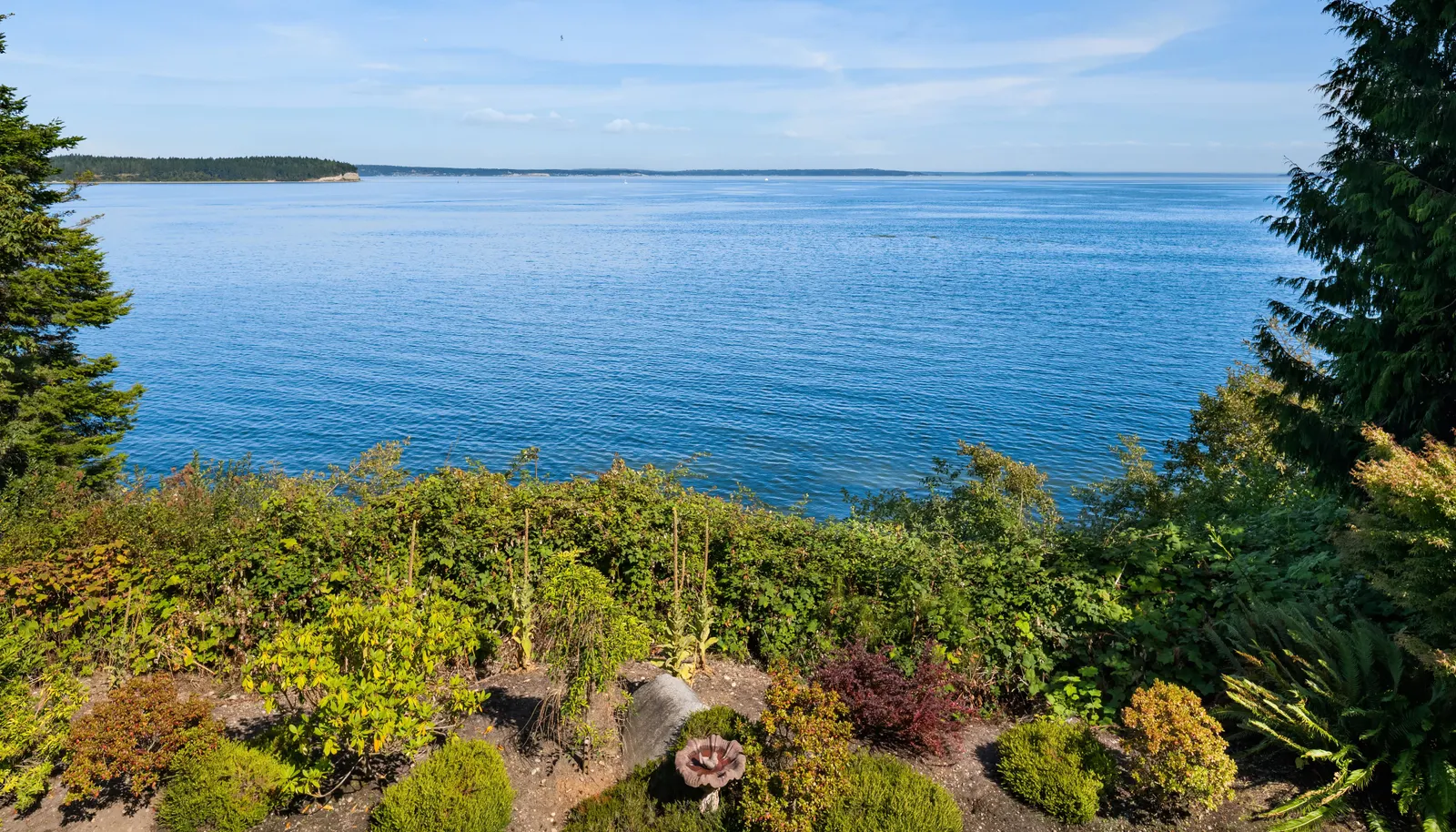 A captivating Puget Sound waterfront estate perfectly sited on 2.85 private acres with 125 feet of medium bank paradise and tucked away on a quiet bay with panoramic views of the Sound, Whidbey Island, and the Cascade Mountains.